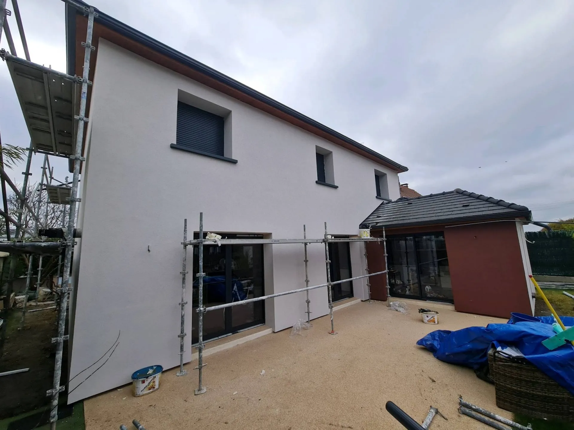 Les travaux ont duré environ 3 semaines. Nous avons utilisé les matériaux Baumit avec un enduit de finition auto nettoyant qui élimine les saletés grâce au photons de la lumière: enduit Naoportop