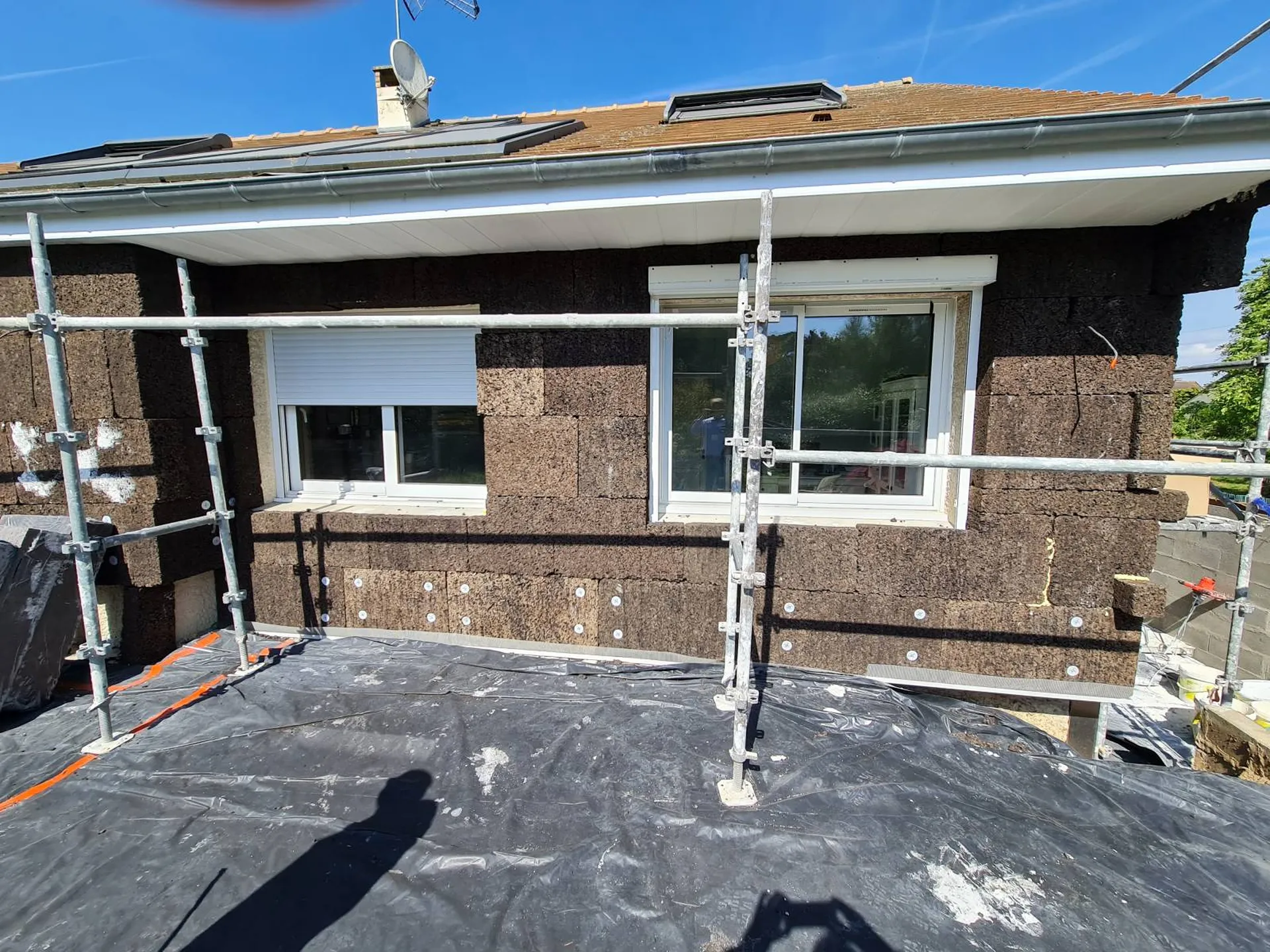 Pose d'isolant en liège sur une maison individuelle située à Andelu dans les Yvelines.